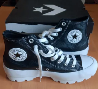 Zapatillas altas Converse para mujer en color negro y suela blanca. - Diseño de caña alta. - Cierre con cordones blancos. - Detalle de logo circular en el lateral. - Suela gruesa con relieve. Tienen un uso. Talla 39,5. 6,5 uk. 25 cm. Sin caja. Se entrega en Las Matas. Hago envíos. No hago intercambios