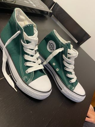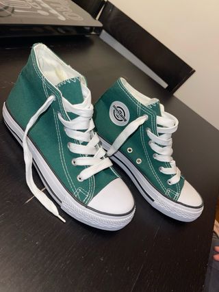 Zapatillas de caña alta con un diseño inspirado en el estilo clásico de Converse unisex. - Color verde intenso. - Cordones blancos. - Suela blanca de goma. - Detalle de logo circular en el lateral. - Como nuevas con etiquetas en la suela. - Sin usar.