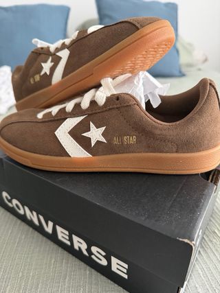 Zapatillas Converse All Star en color marrón, completamente nuevas y sin estrenar. - Diseño clásico con el logo de estrella. - Material exterior de ante. - Suela de goma. - Cordones blancos. Se venden por contusión de talla y finalización del periodo de devolución. Conserva la caja y el envoltorio original.