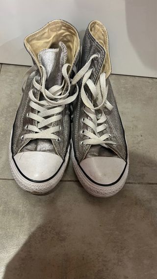 Zapatillas bajas de lona en color gris. - Cierre con cordones blancos. - Suela de goma blanca. - Detalle de línea negra en la suela. tire la caga porq me ocuapaba espacio pero están sin estrenar