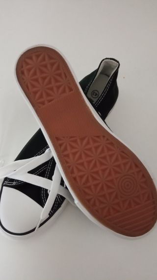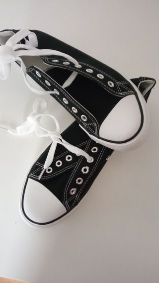 Zapatos estilo "converse" negros con cordones en blanco. Sin estrenar. Número 43 y medida del largo de la suela del zapato 28'4cm.