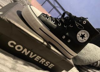 Botas Converse de caña alta, sin estrenar. Diseño moderno con suela gruesa. - Color negro y blanco. - Cierre con cordones.