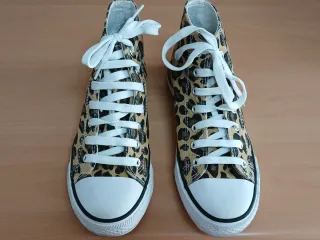 Zapatillas deportivas con un llamativo estampado animal print/leopardo Estilo "Converse" - Diseño de caña alta. - Cordones blancos. - Puntera reforzada. -Suela antideslizante. Apenas usadas, están en perfectas condiciones.