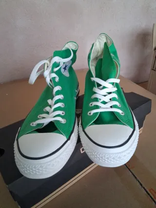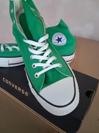 Zapatillas de la marca Converse en color verde y blanco. - Diseño de caña baja. - Cierre con cordones. - Detalle de estrella lateral. Están en perfectas condiciones , se han utilizado una sola vez.