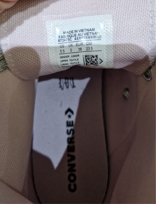 Zapatillas Converse blancas con muy poco uso. Se compraron con un número menos por equivocación y solamente me las he podido poner de tres a cuatro veces, ya que me hacen daño. mi número habitual es un 41. Se entregan lavadas por completo y con su caja original