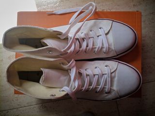 Zapatillas de lona estilo Converse. - Color crema - Cordones crema - Detalle de ribete burdeos. Solo usado una vez, se vende por equivocación en talla.