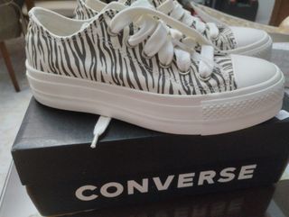Zapatillas Converse plataforma talla 37 con estampado de cebra. Son de lona, tienen un diseño elegante y moderno. . - Modelo: Chuck Taylor All Star Platform. - Estampado: cebra.