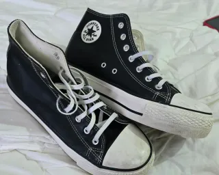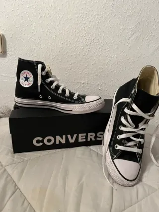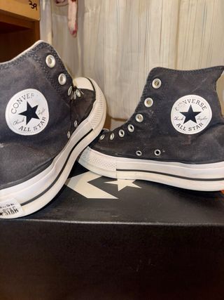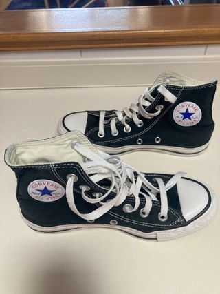 Botas altas Converse de color negro originales. Por dentro tiene marcas de uso en el talón y la suela está un poco despegada, se puede pegar con pegamento de zapatos. De ahí el precio, por fuera están intactas y no se manchan. - Material exterior de cuero. - Cierre con cordones.