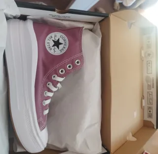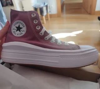 Zapatillas Converse altas de color morado, talla 38.5. Están en buen estado y son ideales para el día a día. - Diseño atractivo. - Material de calidad. - Cómodas y estilosas.