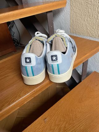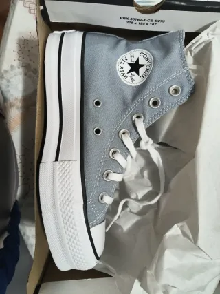 Botas Converse originales color gris claro azulado. T. 37,5 pero calzan como un 38,5. Suela doble. Usadas solo un par de veces porque se compraron sin tener en cuenta que tallan grande. Posibilidad de recoger en Aranjuez, Ontigola, Seseña, Illescas y alrededores y Madrid Sur. También envíos.