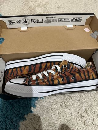 Zapatillas bajas Converse con un llamativo estampado de tigre. - Diseño clásico de Converse. - Cordones blancos. - Suela de goma blanca.