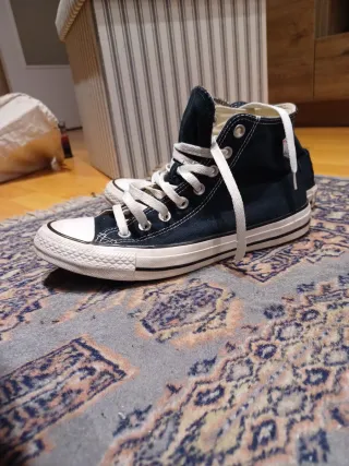 Zapatillas tipo Converse en color negro y blanco. Están en perfecto estado. - Cierre con cordones blancos. - Diseño clásico de lona.