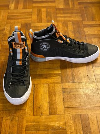 Zapatillas deportivas altas de la marca Converse. - Diseño moderno en negro con detalles naranjas. - Cierre de cordones. - Tiradores en talón y lengüeta.