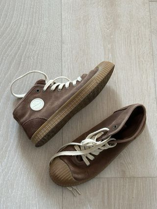 Vendo zapatillas estilo Converse / All Stars, marca Coolway, talla EUR 38. Color marron, tela suave. Coolway es una marca legendaria fundada en 2003, creada por una familia zapatera y diseñada en España (Valencia). Diseño clásico, cómodo y atemporal. Están en excelente estado, con casi nada de uso. Las vendo únicamente porque me cambié a calzado barefoot. Ideales para looks casuales, cómodas y fáciles de combinar. 👟 Marca: Coolway 📏 Talla: 38 💶 Estado: excelente 📍 Entrega en Metro Plaza de Centre o envío según acuerdo Cualquier duda, escríbeme 🙂