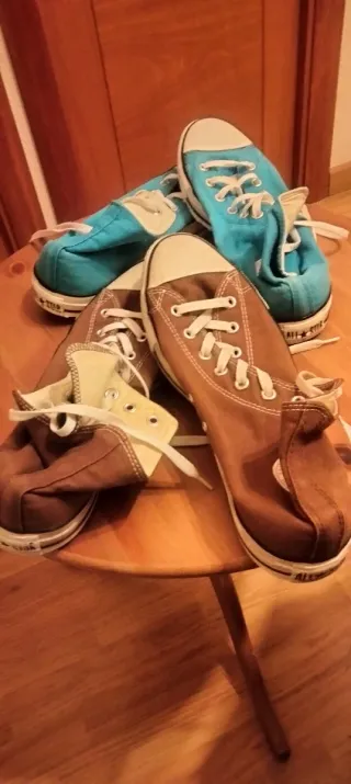 Dos pares de bambas converse star, nuevas. Talla 45. Color azul celeste y marrón.