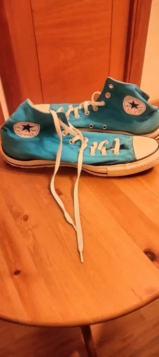 Zapatillas altas Converse Chuck Taylor All Star. Apenas usadas. - Diseño de tela azul con pespuntes blancos. - Cierre de cordones. - Suela de goma blanca. Podría interesar cambio por material musical de Boss korg Zoom Digitech Eventide Strymon Joyo Harley Benton Epiphone Fender Gibson Gretsh Hotone Mooer Roland Ibanez Yamaha Warwick Alembic Markbass Phil Jones Ampeg Laney Grbass Mxr Hagstrom Marcus Miller Cort Squier Seymur Duncan Novation Akai Sonicware Play Station Xbox Sega Nintendo Gamer