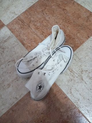talla 36 a 41 Zapatillas Converse de caña alta con plataforma. - Diseño clásico en negro y blanco. - Cordones blancos. - Suela de plataforma gruesa.