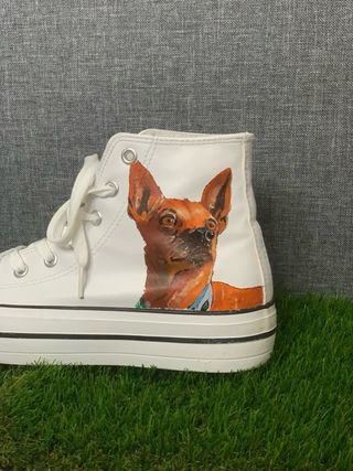 ¡Atención amantes de las mascotas! 🎉 Vendo zapatillas personalizadas con el diseño de tu mascota favorita. Hechas a mano y súper cómodas, estas zapas no solo te harán destacar, sino que también mostrarán tu amor por tu mejor amigo peludo. 🐶🐱 Únicas y perfectas para cualquier ocasión. ¡No pierdas esta oportunidad de llevar a tu compañero siempre contigo! 💖 ¡Pide las tuyas ya en Wallapop! Pregunra sin compromiso y te hare un presupuesto personalizado☺️