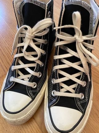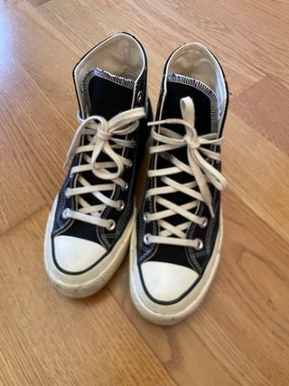 Zapatillas de estilo Converse, perfectas para un look casual. Tengo dos 39 y 42 solo un uso - Diseño bajo. - Cierre con cordones blancos. - Puntera reforzada. - Suela de goma.