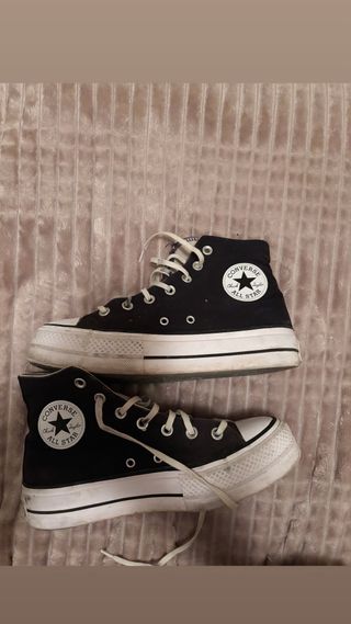 Zapatillas altas Converse de plataforma en color negro. - Cordones blancos. - Suela blanca. - Logo circular de All Star en el lateral. -Hay que cambiarle los cordones