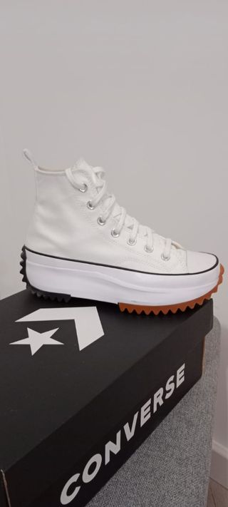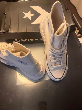 Zapatillas Converse de plataforma en color blanco. Diseño moderno y cómodo. Solo 3 veces puestas - Modelo de caña alta. - Suela gruesa con diseño dentado.