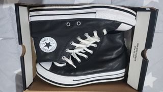 Zapatillas Converse de caña alta con plataforma. Usadas pero en buen estado. - Diseño clásico en color negro. - Cordones blancos. - Suela blanca de plataforma. - Punta reforzada.