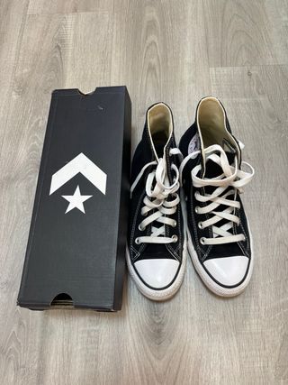 Vendo zapatillas Converse Chuck Taylor All Star originales en color negro, modelo clásico de caña alta. Están en muy buen estado, puestas una vez, como se ve en las fotos. Son cómodas, combinan con todo y nunca pasan de moda. • Marca: Converse • Modelo: Chuck Taylor All Star • Color: Negro • Talla: 38 • Estado: Muy bueno / apenas uso • Incluye caja original 📦 Envío rápido y seguro✨