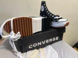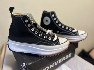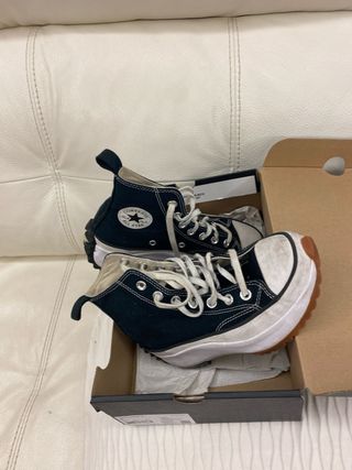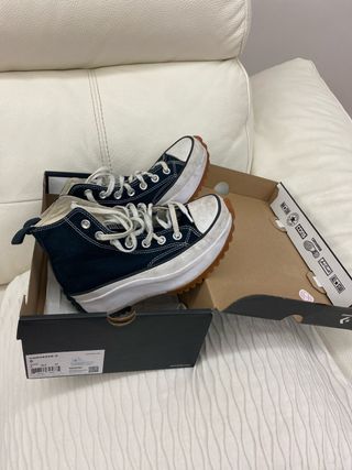 Zapatillas Converse Run Star Hike de caña alta en color negro y blanco. Suela gruesa con plataforma. - Cordones blancos. - Detalle de logo en la lengüeta y el lateral. - Suela de goma con diseño dentado. tallan como una 41 un poco larga, están totalmente nuevas, fue un regalo y no las he usado nunca.