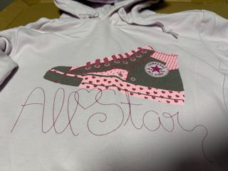 Sudadera con capucha de Converse, color lila claro y con un divertido estampado de zapatilla. - Diseño de zapatilla estilo Converse All Star. - Estampado con corazones y cuadros. - Bolsillo frontal tipo canguro.