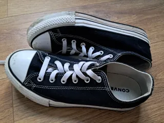 Zapatillas Converse con plataforma, en muy buen estado. - Diseño clásico de caña baja. - Cordones negros. - Suela de goma blanca.