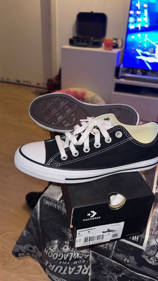 Zapatillas Converse All Star originales, color negro y blanco, sin estrenar. - Cierre con cordones. - Suela de goma. - Diseño clásico bajo. Las vendo por error en la talla