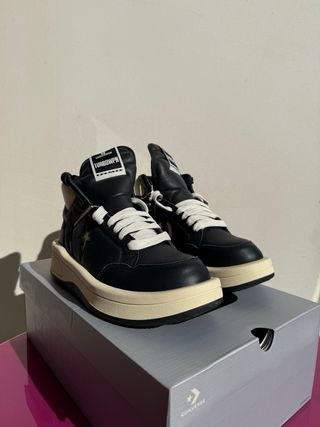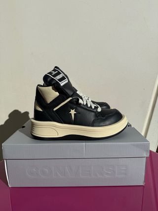 Zapatillas altas Converse TurboWpn, colaboración con Rick Owens. Nuevas a estrenar. Tallas disponibles desde la 36 hasta la 47 - Diseño en cuero negro con detalles en beige. - Suela gruesa de goma. - Cierre de cordones blancos.