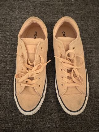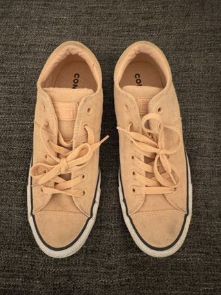 Zapatillas Converse de ante en color rosa pálido. - Cierre de cordones. - Suela de goma blanca con ribete azul marino. - Detalle de logo en la lengüeta.