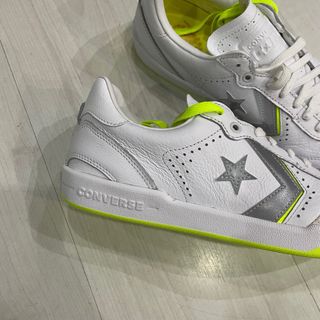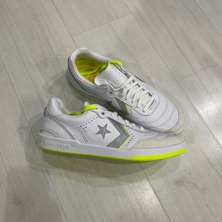 Zapatillas de la marca Converse, modelo Cons. piel premium - Color blanco con detalles en amarillo neón. - Logo de estrella gris en el lateral. - Suela de goma blanca.