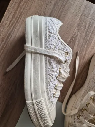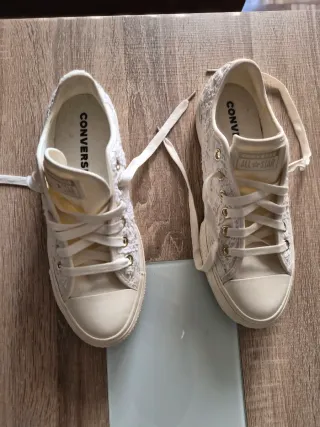 Converse con plataforma talla 39 color blanco con estrellas bordadas 🤍🌟🌀 desgastes menores de uso que puedes ver en las fotos 🤗