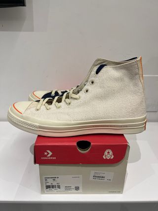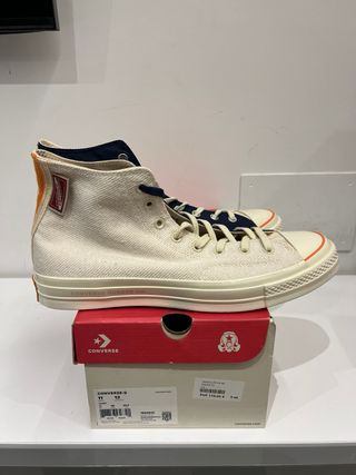 Zapatillas altas Converse Chuck Taylor All Star 70. - Diseño en color beige con detalles multicolor. - Talla 45.