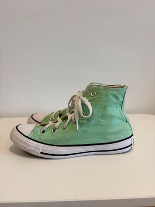 Zapatillas estilo Converse de caña alta en color turquesa y blanco. - Cordones blancos. - Suela de goma negra - Diseño clásico de Converse. - Casi nuevas Pago en efectivo o por bizum.
