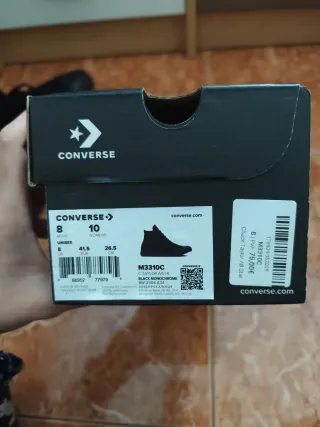 Clásicas y atemporales, estas Converse en color negro con detalles en blanco son perfectas para cualquier ocasión. Combinan comodidad y estilo Talla: 40 Color: Negro con detalles en blanco Estado: Un poco desgastadas pero bien conservadas Ideales para un look casual, urbano o incluso más formal