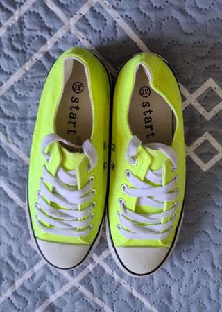 Zapatillas Converse All Star de tela. No tienen más de dos puestas por error en talla. - Color amarillo vibrante. - Diseño clásico de caña alta. - Suela de goma blanca con detalles de color. - Logo de Converse All Star en la suela.