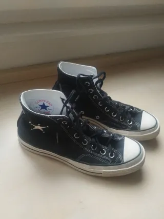 Converse modelo Chuck 70 en colaboración con Telfar. Es una edición limitada. Los cordones blancos no han sido utilizados. Las zapatillas se encuentran en perfecto estado, las he utilizado en contadas ocasiones, no llegando ni a 5 días de uso.