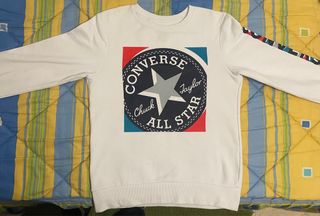Sudadera blanca de manga larga con el icónico logo de Converse. - Diseño frontal con el logo Chuck Taylor All Star. - Detalles de color en el logo. - Estampado en las mangas.