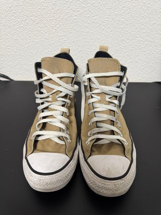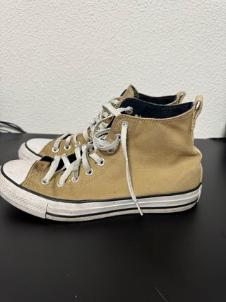 Converse Chuck Taylor altas en color beige, talla 38. Están prácticamente nuevas, usadas solo dos veces. Son de tejido chubasquero.