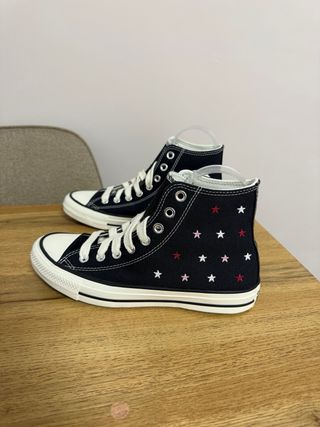 zapatilla converse en color negro y detalle de estrellas tallas disponibles: 39.5/25cm 40/25,5cm