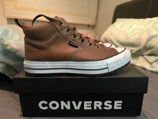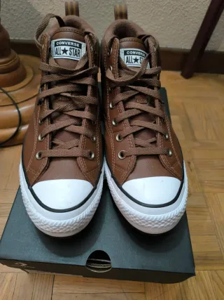 Zapatillas Converse altas, talla 39, en color marrón. Son de lona y tienen un diseño clásico. Ideales para un look casual. - En muy buen estado. - Cordones marrones a juego. - Suela beige.