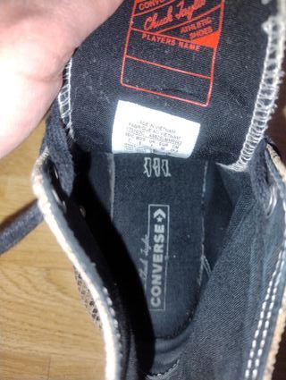 Zapatillas altas Converse Chuck Taylor. - Color negro con detalles blancos. - Cierre de cordones. - Suela de goma Sin manchas ni rotos,usadas pero poco,creo que es alguna edición especial,el precio es porque tengo que poner algo,se aceptan ofertas