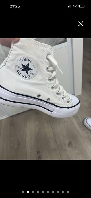 Mira mis valoraciones todos mis artículos nuevísimos. 24cm Zapatillas Converse All Star de caña alta en color blanco. Muy cuidadas. Algún logo un pelín borrado no es por uso padecen deceso las converse.