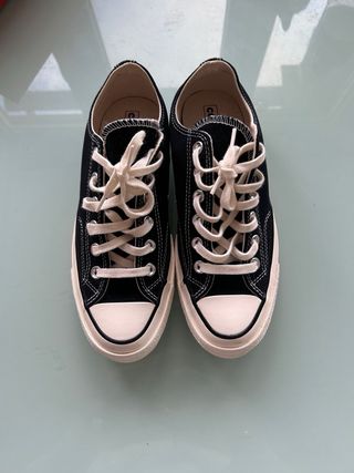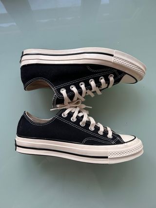 Zapatillas Converse Chuck 70 de lona con un estilo vintage. - Diseño clásico de caña baja. - Cordones blancos. - Suela de goma. - Costuras blancas. Las compré online pero no me han gustado como me quedan y no me quedan bien de talla ‼️importante‼️ La zapatilla talla más es decir un 40 es igual a un 39 ‼️escucho ofertas‼️