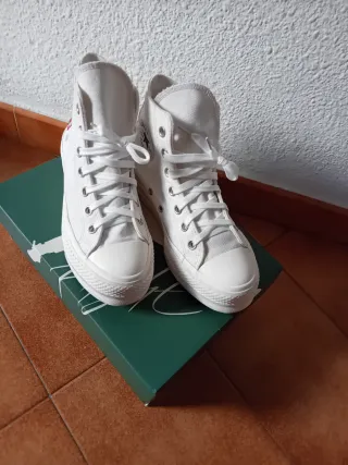 Zapatillas de caña alta de la marca Converse. Son del 41, pero yo suelo calzar el 42 y me van bien - Combinación de colores: blanco, rojo y verde. - Cordones negros. - Detalle de estrella y chevron en el lateral.