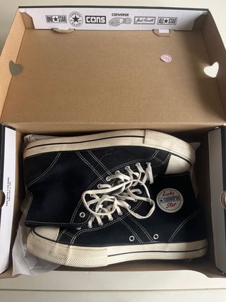 Zapatillas Converse negras, a estrenar. - Diseño clásico de caña baja. - Cordones blancos. - Suela de goma blanca. - Detalle de costuras blancas.