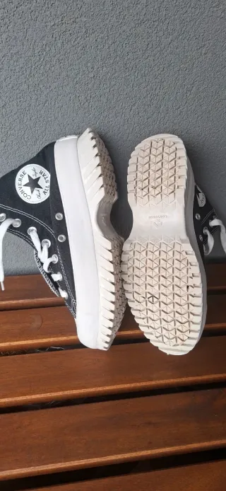 Zapatillas Converse con plataforma estilo cuero. Son una 35 pero porque me dijeron que tenía que coger una talla menos. Yo tengo la talla 36.